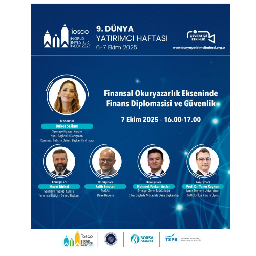 Bu hafta TSPB’nin düzenlediği 9. Dünya Yatırımcı Haftası’nda, SPK’nın davetiyle “Finansal Okuryazarlık ve Finansal Güvenlik” üzerine konuşuyor olacağım. 📅 6-7 Ekim 2025 🕓 16.00–17.00 📍 İstanbul Finans dünyasında güvenin ve okuryazarlığın önemini birlikte konuşalım. 💬